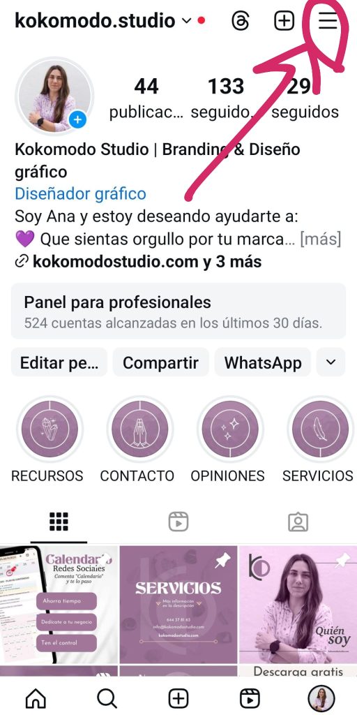 - Ve a tu perfil y toca el menú de tres líneas en la esquina superior derecha.